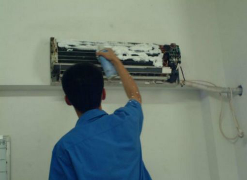 | 运城空调维修师傅给运城用户上门维修清洗空调。 |